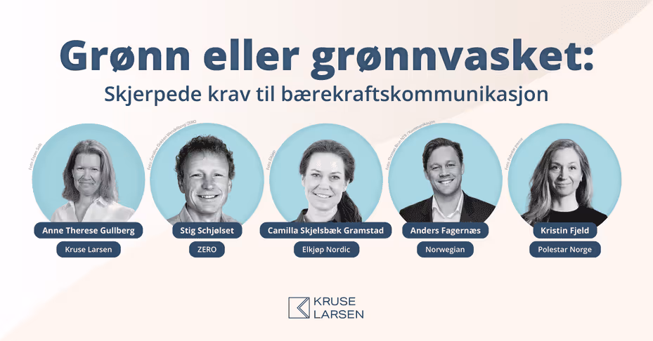 Onsdag 17. august kl. 13.30 inviterer Kruse Larsen til panelsamtale i Arendal med representanter fra norsk næringsliv om hvordan de følger opp de nye reglene, for å ikke gå i grønnvaskingsfella.